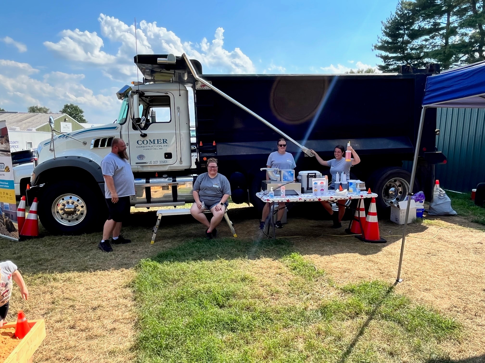 We had a wonderful turnout and helped everyone cool off with snowballs. Kids who visited with Comer Construction enjoyed climbing on our equipment, playing in the sand, and a variety of giveaways. Check out the photos below.