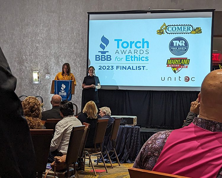 Comer Construction was named a Finalist in the 2023 Torch Awards for Ethics from BBB of Greater Maryland.