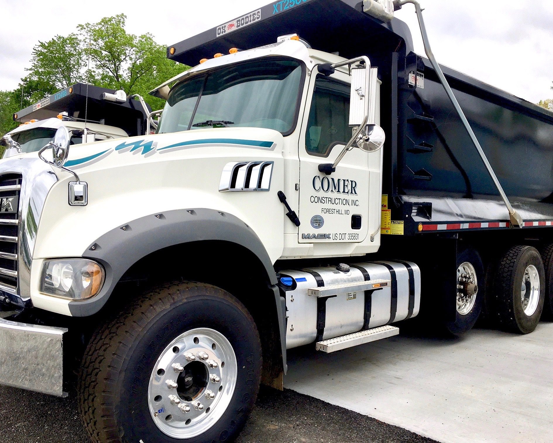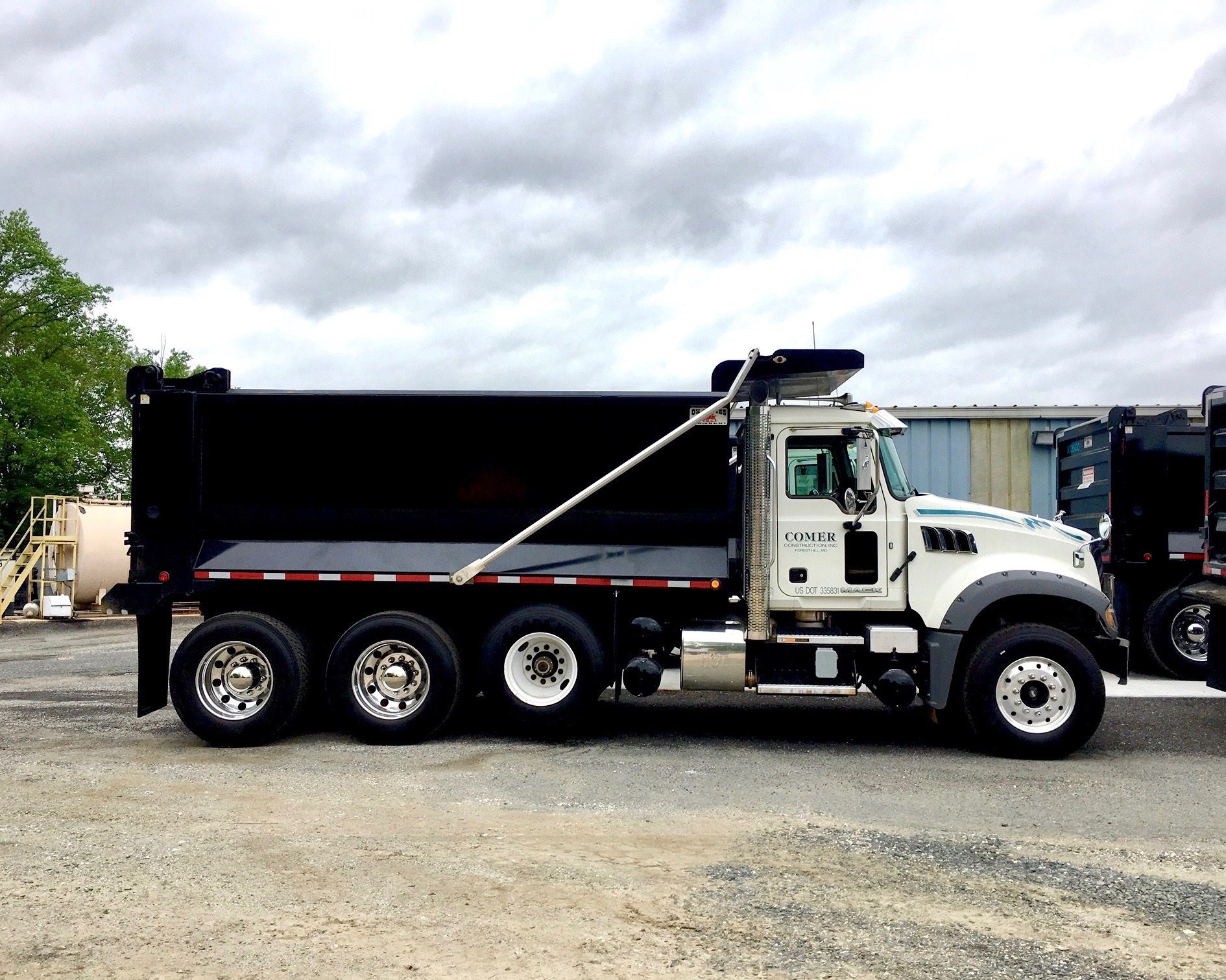 Comer Construction recently added four new environmentally-friendly 2016 MACK GU713 Dump Trucks to its fleet. The new dump trucks were purchased to reduce maintenance costs and improve fuel efficiency among the company’s 22 total dump trucks. Comer Construction’s experienced drivers are appreciative of the new driver-friendly dump trucks used to transport loose material from one location to another.