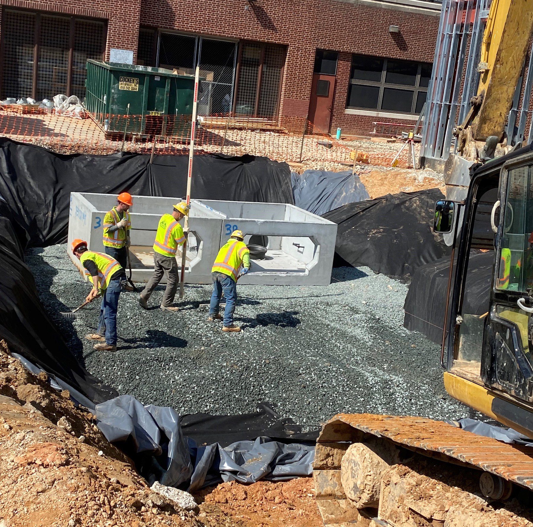 Now that the new school is built, we’re back on site installing a parking lot and athletic field. This includes additional stormwater management. We’ll finish with additional paving, curbs, and gutter work.