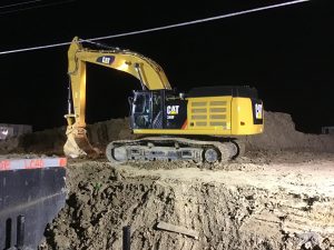 The CAT 349FL Excavator is currently in daily operation in our Utility Division working on pipe installation projects to set heavy structures and extensive excavation during the water, sewer and storm drain installation process.